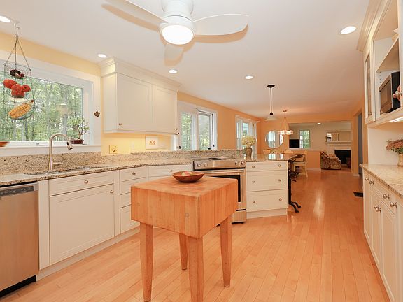 Nestled on a beautifully landscaped, level corner lot that backs onto serene conservation land with walking trails, this inviting Cape-style home offers the perfect blend of comfort, style, and convenience. Step inside through the mudroom to an abundance of natural light and a welcoming, open-concept layout. The spacious kitchen and dining area seamlessly flow into a stunning front-to-back family room featuring a cozy fireplace—perfect for gatherings or quiet evenings at home. From here, you can step outside to a beautiful covered porch or, if you choose an uncovered deck, to sip your morning coffee and enjoy the private backyard full of perennial gardens. Also on the first level, you’ll find a living room and a versatile bedroom—ideal as a guest room, home office, or playroom—along with a ¾ bath and convenient first-floor laundry. Upstairs, the primary suite provides a peaceful retreat, featuring a walk-in closet and a private en-suite bathroom. Two additional generously sized bedrooms and a full bath complete the second floor, all with hardwood flooring. The partially finished basement provides even more space for a rec room, home gym, or additional storage. This home truly has it all—space, privacy, and a picturesque setting—while still being close to everything you need in an award-winning school district. Don’t miss the opportunity to make this beautiful property your own!