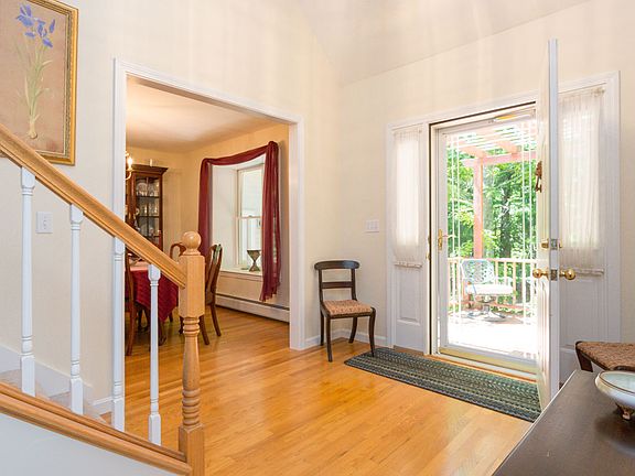 Tucked Nicely Back On A Private Road In An Established Country Setting, bordered by gardens this custom-built Contemporary Cape overlooks a very private 3 acre lot. A pathway leads to the charming front porch pergola enhancing the entryway while providing a stylish sitting area to relax and enjoy the gardens. The 2-story grand foyer and dramatic cathedral ceiling with open staircase accentuates the spacious main level open concept design. The large eat-in kitchen features tile flooring and offers abundant cabinetry and opens onto a bright 4-season glass-enclosed porch, perfect for drawing attention outward to the serene natural views year-round. The natural beauty of hardwood floors adds warmth throughout the living areas. The living room features a raised hearth wood burning fireplace and there is also a formal dining room for more intimate gatherings. The first floor master suite with its high ceilings is spacious and features double closets, separate shower and a relaxing luxury spa bath. The second floor features an office/den/craft room and 2 large bedrooms with vaulted ceilings and generous closet space. The large rear deck overlooks a fenced-in area and leads down onto the well-landscaped grounds surrounded by beautiful gardens including a wisteria trellis and a patio area for enjoyable outdoor gatherings with family and friends. There is also a full basement offering plenty of storage space and walk-up into the 2-car attached garage, and a garden shed. Convenient to Ogunquit Center, Perkins Cove and the Main Beach is just a short 2.5 miles away…don’t miss this home’s unrivaled value! For more information or to schedule a showing, contact Greg Gosselin ~ Team Gosselin at 363-2414 or 752-2353; greg@greggosselin.com