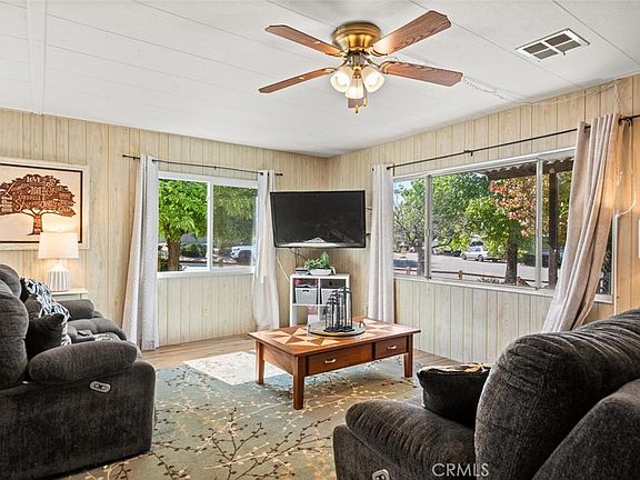 Perched on a prime corner lot at the top of Kelley Ridge, with thoughtful upgrades and sunset views of the valley, this 2 bedroom 2 bath plus bonus sunroom and 2 living rooms home is under $230,000 and ready for it new owners. Enjoy the huge wrap around deck over looking the valley. The sunroom offers a bright, flexible space that easily transforms into an additional living room, office, playroom, craft area, or dining spot. Located just minutes from Lake Oroville, this home offers quick access to boating, fishing, or swimming making it ideal as a full-time residence or a relaxing weekend retreat. Inside, you’ll find two living areas—one warmed by a newer pellet stove and the other filled with natural light and new windows that flows directly into the dining area, where a stylish new hanging light fixture adds an elegant touch. The kitchen has been refreshed with a new induction cooktop, range hood, updated sink and faucet, and a new garbage disposal, while a charming breakfast bar. A massive walk-in pantry offers versatile built-ins perfect for storage, a hobby room, or even a compact home office, and a utility sink next to the laundry area adds further functionality. Recent interior upgrades include beautiful waterproof vinyl plank flooring throughout, a newly installed return air system, and an updated thermostat. Both bedrooms are spacious, with the guest bathroom barely used, and the primary suite featuring a large closet and private en suite with a soaking tub and walk-in shower. The sellers have continued to enhance the home with freshly painted white exterior trim, two brand new front-facing windows, and a repaired and newly painted back porch—ready for your next outdoor gathering. Additional updates include a new hot water heater, spray foam insulation under the home, and a drip irrigation system in the front yard. Outdoors, you’ll enjoy a lemon tree, stone fruit tree, and a small orange tree, plus a second covered patio ideal for relaxing or tackling weekend projects. There’s also a private carport with a remote-controlled garage door, a detached storage shed, and a large gravel parking area perfect for RVs, boats, trailers, or work equipment—with an extended driveway for even more parking. With a thoughtful blend of comfort, functionality, and sweeping views, this home is move-in ready and waiting for you to make it your own.