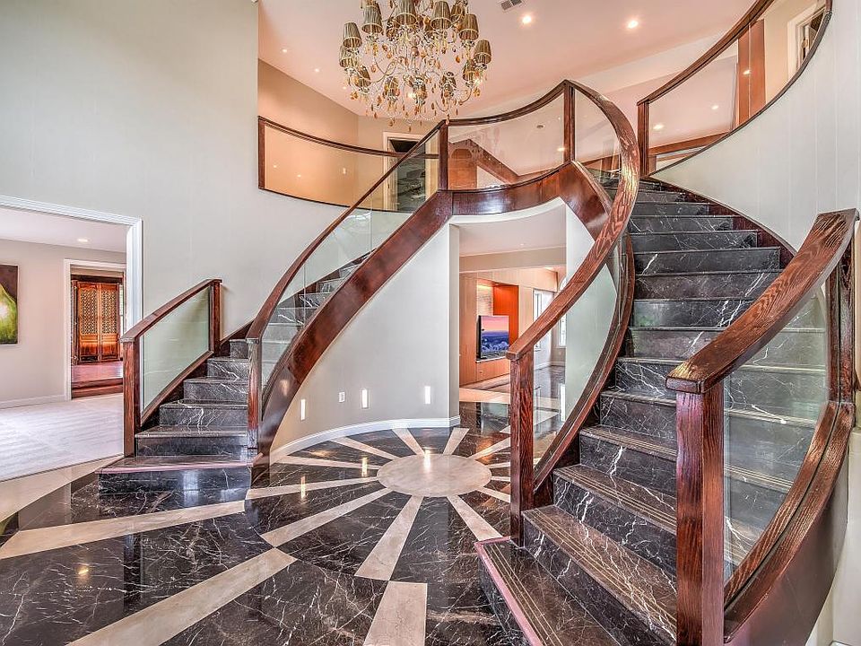 - Foyer: Two Story, Dec Molding, Floor - Marble, Circular Stair