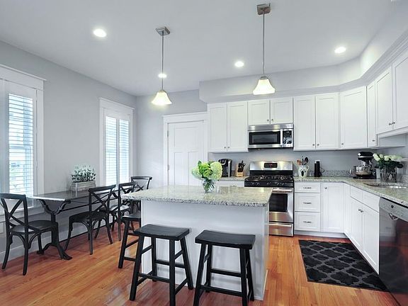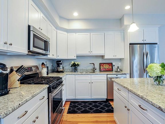 WALK TO THE SHIPYARD, COMMUTER TRAIN OR DOWNTOWN! Enjoy a fabulous lifestyle in this single family style condo. Beautiful custom finishes throughout. Designer white kitchen with granite island, stainless appliances open to living room with cozy gas fireplace. Plantation shutters in living room and kitchen add to the charm of the home. Garage also has custom built pantry for extra storage. First floor master in this desirable unit with master bath/ granite counter top and hardwood flooring. Additional master closets were custom built for present owner. Upstairs includes two generous bedrooms and a hall bath with tile floor/granite counter. Lower level offers a spacious family room with plenty of sunlight and a half bath. Perfect open space for gatherings or a game room. Two car attached garage, central air, open floor plan, minutes to commuter boat or train and direct access to Bare Cove Park!
