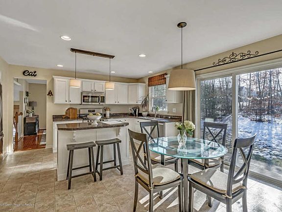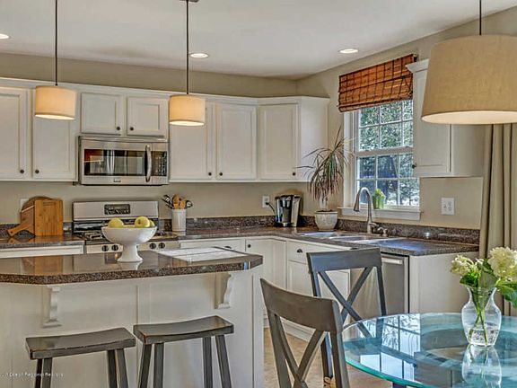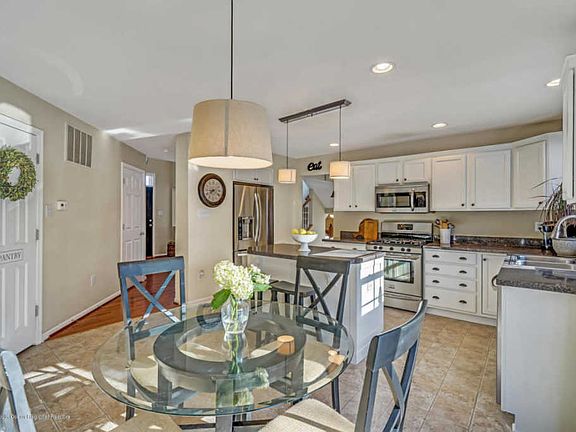 Welcome to 1 Teakwood Lane, the perfect blend of gracious living and design perfection! The home features a spacious bright and airy two-story foyer. The home boasts a formal dining and living room perfect for entertaining. The eat-in kitchen is complete with a center island, recess lighting, and a breakfast area. Over-looking the kitchen is a cozy family room. The downstairs is complete with a half bathroom, laundry room and large pantry. The upstairs features 4 bedrooms and 2 full bathrooms. The master bedroom features a walk-in closet, and an ensuite with dual sinks, a soaking tub and shower. The finished basement has high ceilings and recess lighting and includes storage space, ideal for a playroom or bar. The back yard has a large patio with brick pavers, perfect for summer days!