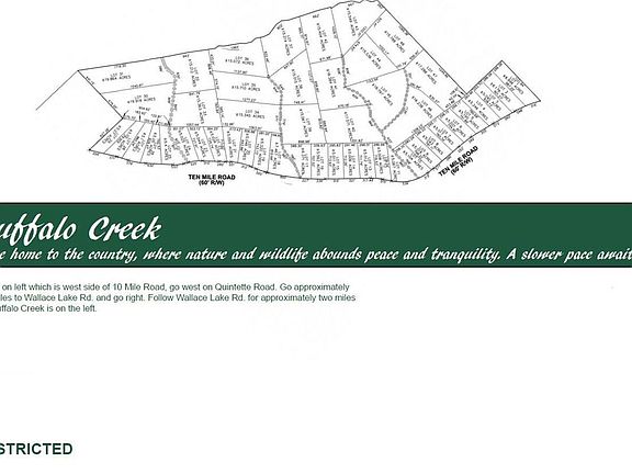 Pace, Florida.. Buffalo Creek Estates...Developer starting the prices low...get in in the beginning and purchase a beautiful (5) acre property that sits between Pace and Jay. Newest and largest residential acreage offered... Deed restrictions for it's owners. Beautiful wooded acreage with privacy and convenience. Located on Ten Mile Road. Corner Lot!!! Great area bring the family, if you just want privacy and a beautiful view. Interior roads will have private road maintenance agreement. Just on the market... GREAT BUY! Lots are available from (5) acres to (15).. Prices range from $49,900 to $125,000. GPS purposes use 2316 Ten Mile Road and the NEW SUBDIVISION IS ACROSS THE STREET