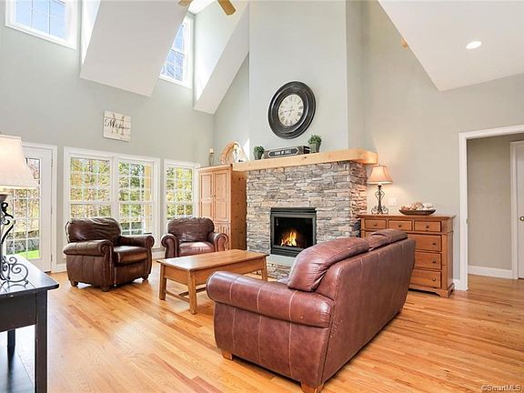 Call Pat Blanko 203-206-9194! ** Stunning!!** Expansive Farmer's porch welcomes you to this custom Colonial/Cape with over 4443sf beautifully set on 2.91 private acres. The open foyer opens to a dramatic great-room with hardwood floors, two stories of windows, raised hearth stone fireplace and open balcony; and formal dining room with hardwood floors and tray ceiling. The gourmet kitchen includes granite counters with breakfast bar peninsula plus center island, farmers sink, tile backsplash, stainless steel appliances including gas cook top with hood and double wall ovens! The kitchen opens to the sunken sun-drenched four season sunroom with vaulted ceiling, wood stove and large windows! Also on the main floor: a spacious master bedroom with hardwood floors, built-in window seat at the bow window, master bathroom with his and her sinks; main floor office/bedroom; mudroom/drop zone with built-ins for a busy lifestyle, full bath; laundry. Second floor includes open balcony, 2 expansive bedrooms and full bath. Separate staircase to spacious bonus room/game room/bedroom with access full bath and there's more!!! Fabulous finished lower level recreation room and additional optional bedroom/guest suite adds over 840 sqft!! Generator with auto transfer switch -THREE car garage with industrial electric heater! Open back deck and brick patio. Overlooks beautiful stream- Six Mile Brook for year round enjoyment and beautiful sunsets off the front covered porch! Quintessential outdoor living! Private road Call Pat Blanko 203-206-9194!