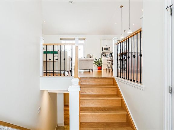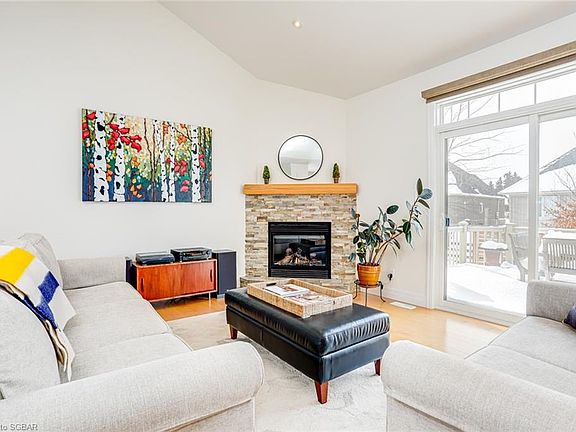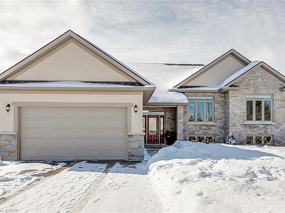Custom bungalow located on a quiet cul-de-sac just a short walk to downtown Thornbury. The home offers open-concept, main-floor living & 2800 sq. ft. of finished living space. The main floor offers 3 spacious bedrooms including a luxurious master bedroom suite with a spa-like ensuite. The main living area features cathedral ceilings, feature fireplace and tons of natural light. The kitchen features stunning solid countertops, a huge island & premium appliances with close/walk out access to a spacious backyard deck. The lower level is fully finished and features a large living area with a stunning barn-board feature wall, gas fireplace, oversized windows, spacious bedroom, cozy library/study, and a beautiful full bathroom.
