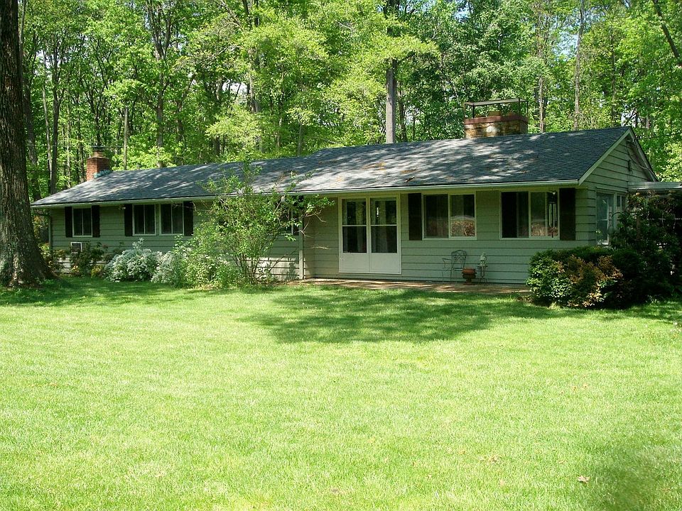 Great value. Solid, well built ranch on beautiful 1.42 acre tree shaded lot in the quite Timberlane section of Hopewell Township. Needs some TLC but with minor cosmetic updates this home offers great potential. Recent capital improvements include new boiler, roof, hot water heater, updated electrical, above ground oil tank and fresh interior and exterior paint. Open living and dining areas feature a vaulted ceiling, impressive stone fireplace, built-in bookcase, expansive windows and French door to patio. Large heated sun room offers possibilities for a great room, playroom or game room. Eat-in kitchen with abundant cabinetry and stainless steel range. Three outdoor patio areas for quite relaxation or warm weather entertaining. Attached two car garage with separate workshop/studio area. Hardwood floors, three generous bedrooms and one and a half baths. Award winning Hopewell Township schools. Convenient to downtown Pennington, shopping, dining and major highways. All reasonable offers considered.