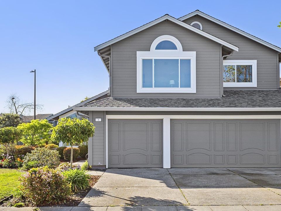 Luxury 5 bedroom home in Woodbridge Estates, Harbor Bay with $150k in upgrades. Situated on a large lot, this spacious house offers 5BR, 3BA, an eat-in kitchen/family room, an open LR/DR & 3-car garage. 1st floor bedroom & full bath are perfect for guests, a home office or an au pair. Dramatic vaulted/cathedral ceilings, hardwood floors & a bright, open floor plan. The beautiful updated, eat-in kitchen/family room has Quartz counters, ample kitchen cabinets, a fireplace & sliding doors that open to the very private backyard with a pergola, mature foliage, flower beds, benches & patio area--ideal for relaxing or entertaining. The beautiful primary suite has vaulted ceiling & a walk-in closet and a new luxurious primary bath with walk-in shower and tub. Located 2 blocks from the SF Bay biking/walking trail & just minutes walk to top performing schools!