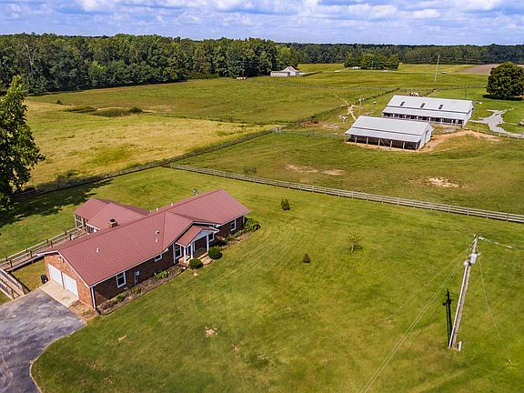 Located on 32.02 secluded acres! BIG BARN w/metal roof & sides, 10 stalls, elec & water, air cond kitchenette. Sm Barn w/ 8 bays (portable). Has a pond. Home w/all new windows, 4 yr old metal roof, added walk-in tub in mst bath. HVAC 2 yrs old. Home needs a little TLC, but has endless possibilities!