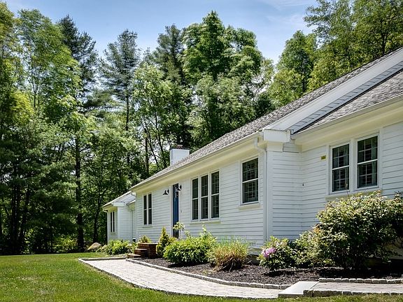 Gorgeous 3 BR, 3 bath RANCH home w/ added bonus of an auxiliary 678 sq ft 1 BR 1 bath apartment, all on priva1.48 acre lot. The one floor living RANCH style home features tons of sunlight, plantation shutters, & hardwood throughout. Open kitchen offers quarts counters, center island breakfast bar & access to convenient mudroom & breezeway entrance. This beautiful kitchen opens to dining room w/ picture window and living room. Living room features electric fireplace, sliders to patio. Gorgeous updated master suite features beautiful new bath with soaking tub, large walk-in closet, laundry room, & private deck. Two additional bedrooms (one of which has its own full bath) & third full bath complete the bedroom area. Unique APARTMENT features good-sized bedroom, living room, kitchen, office, full bath, laundry. Best part of this property is its beautifully wooded setting on a private cul de sac of three homes, yet so close to town center, schools. Plus Hopkinton's highly rated schools!