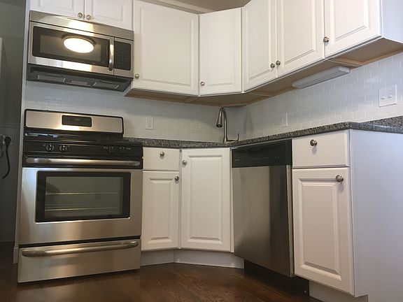 Brand new everything ? 2 Bedroom - renovation just completed! First floor unit with minimal steps. Refinished hard wood floors throughout. Brand new central air conditioning system. Kitchen has granite counter tops, tile backsplash, and brand new stainless steel appliances (microwave, stove, refrigerator, dishwasher). Tile bathroom has sliding glass doors opening into a walk in shower equipped with a rain shower head. Private fenced in backyard with a stone patio accompanied with a stainless steel bbq grill and patio furniture. Home also has a covered porch and and a new 10x8 shed that is included for additional storage. Full size washer and dryer. All lighting fixtures are brand new LED. Gas stove and hot water heater. Off street parking. $1,600 per month (utilities not included), first months rent plus 2 months security deposit. No pets, No smoking. Credit check and application required.