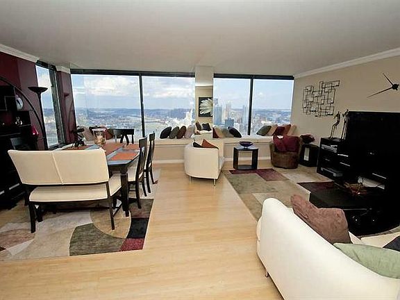 From the 10th Flr, this SENSATIONAL CONDOMINUM is sitting at the HEIGHT OF STYLE! Offering PANAROMIC VISTAS FROM PRIMARY AREAS, take in SWEEPING VIEWS of Three Rivers,Stadiums, DowntownSkyline,Bridges&Landmarks. Lead Guests from the IMPRESSIVE ENTRY into the Large Living/Dining Room that boasts Bamboo Wood Laminate Floors, A WALL OF WINDOWS w WINDOW SEAT the width of the room. A BLACK GRANITE kitchen opens to the Family Room/Den.The SUMPTOUS MASTERSUITE,Dressing/MakeUp Area, Soaking Tub & closetsGALORE!