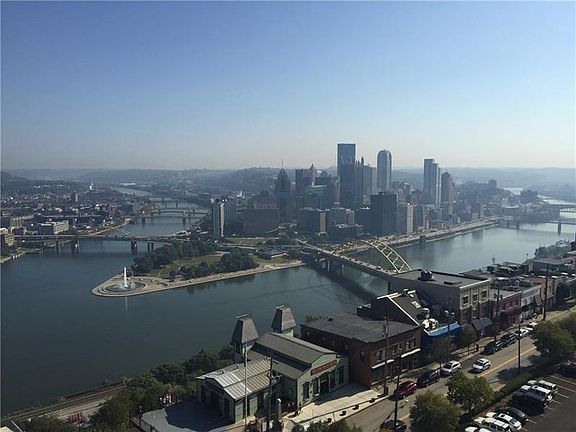 Live a top Mt Washington in this luxury condo with amazing city views overlooking the Three Rivers, the Downtown Skyline & Heinz Field highlighted by 2 balconies! Located among the best floors and in the best tower for city views the nearly window surrounded living room directly over looks Point State Park. Enjoy hosting July 4th parties & treating your guests to a fireworks display that literally bursts at eye level directly in front of your balconies. Also enjoy fireworks at Heinz Field & The Pirates Stadium throughout the year as well as First Night and your guaranteed front row seat for Light Up Night! The parking garage is directly accessed from the elevator so no crossing the lobby to reach the elevator to this condo. Includes 2 deeded tandem parking spaces and storage locker. Amenities include 24hr security desk personal, Health Club, pool, bicycle storage, ext. window cleaning, 24hr maintenance, heated integral parking, water, sewage, garbage removal. Conveniently located!