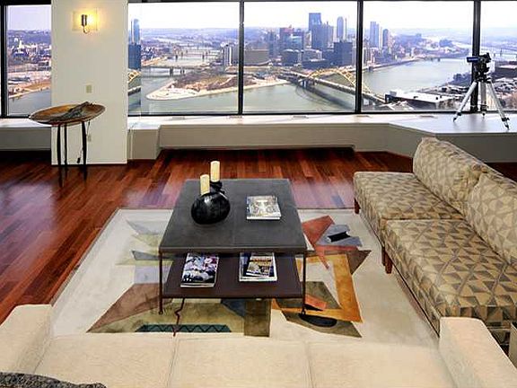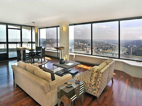 IMPRESS YOURSELF & everyone else in this condo that is truly THE BEST OF THE BEST!The best materials & finishes: MAHOGANY FLOORS, 9' CEILINGS, ST.CHARLES BUILT-IN'S,SUB-ZERO REFRIGERATOR & WINE COOLER, DACOR OVEN, GRANITE COUNTERS to name a few.2634 SF of thoughtful design with attention to detail.THE BEST VIEW! This home features a glass wall overlooking the City,Rivers,Bridges & Stadiums from the living/dining rooms,kitchen breakfast room, Den,Master Bedroom & Bath! 700 SF TERRACE adds to living space.