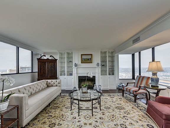 Stunning luxury condo with breathtaking views. A New York style 5 star condo in Pittsburgh. 3 bed, 2.5 baths in 24 hr doorman Trimont with walls of windows and incomparable views are an entertainer's dream. Complete renovation throughout, designed by leading architectural firm. Exquisite finishes and design elements, every bit as warm and welcoming as they are high-end and modern, have transformed every sq inch of the condo's 3,401 sq ft. High, trayed ceilings, endless crown molding, fireplace, custom cabinetry and built-ins combined w/Brazilian Walnut, Carrara Marble, Macaubas Quartzite, Calcutta Marble, granite, top of the line appliances (Wolf/SubZero), and every conceivable bell and whistle to enhance your comfort and convenience! Remote shades on every window; all windows with granite windowsills. Spa-like bathrooms will add to the feeling of being on vacation in your own home, as will the terrace. Pull into 1 of 3 parking spaces and relax- everything's already done to perfection.