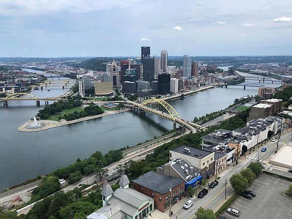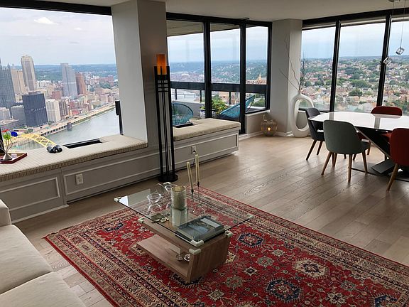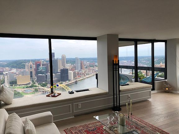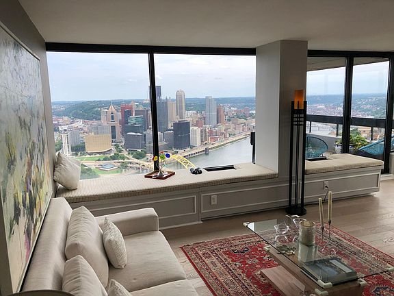 Amazing iconic view of Pittsburgh three rivers. Two bedroom modern apartment, separate TV or dining room. Harwood floors, stainless steel appliance. 20th floor. Excellent condition.
