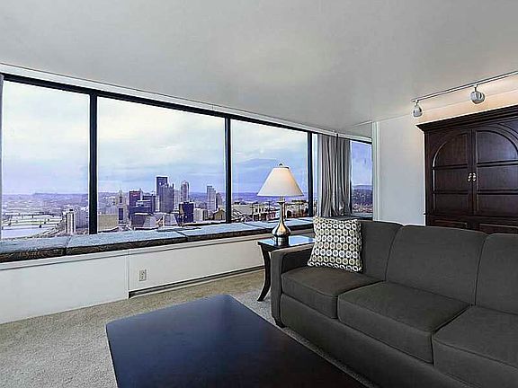 Amazing views of the Pittsburgh Skyline. Oversized living room. Kitchen open to the Living Room and Dining Room. Tons of Closet Space. Large Master Bedroom Suite with Walk in Closet . Master Bath includes soaking tub and shower. In unit Laundry.