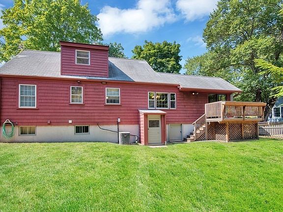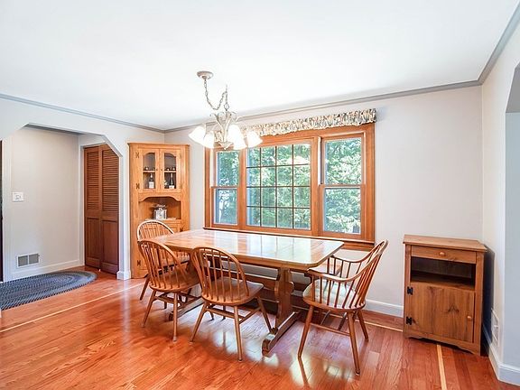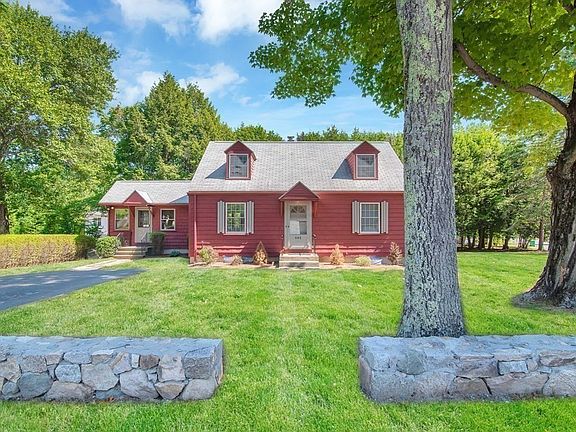 Classic, picture perfect dormered cape in pristine condition,set on a lovely, level, private lot in a quiet, tree lined neighborhood! Move right in! Natural light, hardwood on both floors, beautiful sunsplashed DR w/picture window overlooking the backyard, spectacular cherry floor w/maple wood inlay, 2 beautiful corner built -in cabinets, open floor plan w/arched ways to a spacious LR & charming KIT. Mudroom w/closet. 4 spacious bedrooms, large closets/ built-ins, updated baths, one w/laundry chute. Whole house fan. Spacious family room w/wood burning stove & bar. Utility room w/shelving/ storage & W/D. Full foundation unfinished storage room under the sitting room. Heat sys.& a/c- 2008, roof- 10-15 yrs, oil tank- 2 yrs, updated windows/ electric service.House is offered with furniture.Some may be removed. House will be connected to town sewer before closing. Disturbed lawn will be tilled and seeded. Close to shops, restaurants, main roads, trails, town forest, MBTA train. A gem