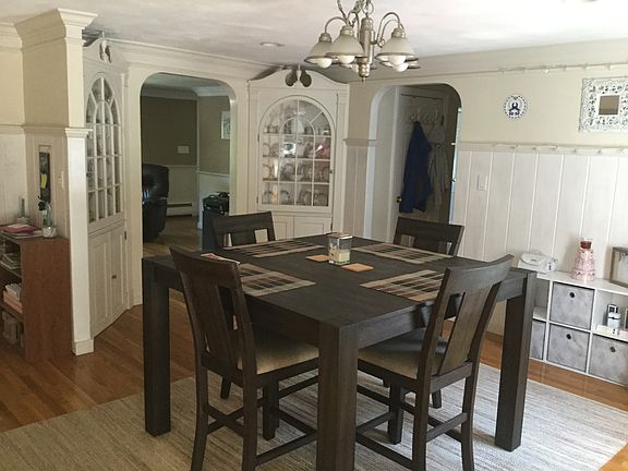 Custom built ranch on quiet cul-de-sac (private way with 2 houses). Open concept. 6 rooms on first floor with 2 bedrooms and 2 bathrooms. 1628 sq. ft. Hardwood floors throughout (porcelain tile in kitchen area). Large granite kitchen with cathedral ceiling and skylights. Central A/C. Lots of closets. Washer/dryer, double oven stove, refrigerator, microwave, garbage disposal. Level fenced-in lot -19,811 sq. ft. lot. Large trek deck off kitchen. Motorized awning. Lower deck with pergola. Attached heated 2 car garage. Parking in driveway for 6 vehicles. Additional shed for storage. Close to Routes 93 & 128/95. Finished basement - 1,348 sq. ft. Possible in-law apartment. Full bath. Kitchen area. Open concept. Potential for 2 additional bedrooms. Walk-in cedar closet. Pergo flooring. Storage room. Refrigerator. Washer/dryer.