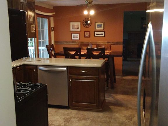3 bedroom 2 1/2 bath...additional full bath and kitchen in finished lower level 1st floor laundry, eat in kitchen, formal dining room, 16 x 24' great room with gas fireplace. Central Air. 2 car garage Large half acre park like private yard. Ceramic floor in foyer, kitchen, laundry room and powder room. Hardwood floor in dining room. Master-on-suite has a walk in shower. Main bath newly tiled Corian counter top and ceramic back splash. All appliances included.