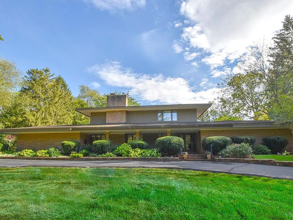 This delightful & stylish home easily integrates into its lush 1.75 acre park-like setting in Barton Hills. Handsome Prairie-style architecturally inspired w/a smart open flr plan & filled w/natural light, thoughtful updates & remodeling, including 5 plank quarter sawn oak flrs, vaulted ceilings & unique skylight details. An inviting front porch & foyer leads to alluring LR & DR w/walls of windows & peaceful treed views. Renovated kit w/warm accents features a multitude of cabs, newer SS appls, granite c-top, tile bckspsh & new can lighting flows to the FR w/cozy FP w/brick surround. Entertaining is easy on the spacious screened porch. Quiet 1st flr mstr suite w/FP, private study w/French drs & huge window, wlk-in closet & dressing area & nice bath. Private 1st flr study/guest bdrm & bath. Upstairs offers 3 great bds & updated bath. Expansive rear patio overlooks mature trees & pines. Professionally landscaped yard w/circle drive. Side-entry garage. Just a short walk to Barton pond.