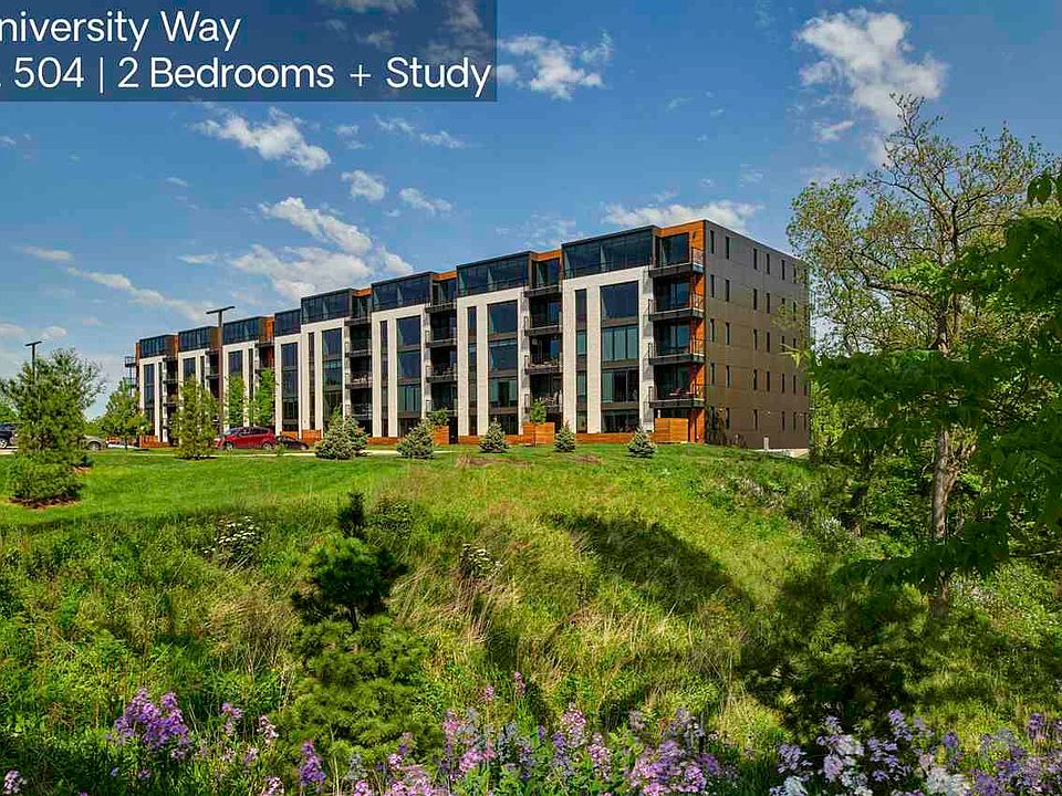 Top floor 2-bedroom 2-bath plus study condo in the north building of One University Place. Wooded views. Condo features a private balcony, luxury vinyl plank flooring, quartz countertops, tiled bathrooms, and tiled showers. Designer finishes throughout Walking distance to UIHC, UI athletics, health and law colleges. Two building elevators. Purchase includes parking space 55 on parking level P2 of the underground garage.