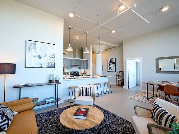 *Photos are of model unit, individual units may vary* This floorplan type features 1215 square feet with two bedrooms, high ceilings, large windows with shades & screens, concrete floors, stainless appliances, in-unit laundry, and designer quartz & granite countertops.