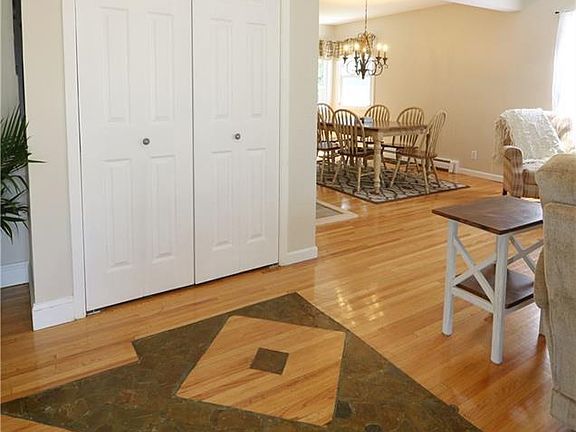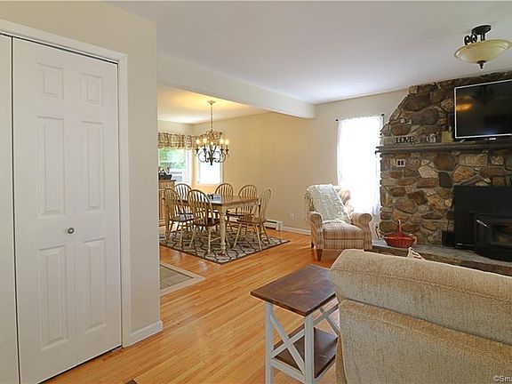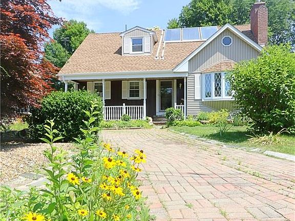 Recently renovated 3-4 bedroom home has plenty of room for everyone. Open floor plan of the kitchen, dining room, and living room is sunny and bright and ideal for entertaining or relaxing by the custom field stone fireplace. The wood stove insert will heat the entire home during the winter to save on oil costs. The kitchen has a JenAir cook top with all the accessories, double ovens, breakfast bar and a new tile floor. First floor master bedroom has room for a sitting area or desk and the first floor full bath allows for one floor living. The second floor has three bedrooms and an updated full bath with shower stall and granite vanity. The heated basement has a bonus room that would make a great play room or game room. New roof, boiler and 200 amp electric panel. The new 40 gallon on demand hot water heater can be supplemented by the 120 gallon solar hot water heater. The two car detached garage is extra large and also has a new boiler to keep you warm while working on projects. The custom brick driveway with turn around is just the beginning of what the park like yard has to offer. A gazebo and fire pit for evening entertaining. Blueberry bushes, Asian pear and apple trees as well as beautiful gardens and flowering bushes make the yard an outdoor paradise.