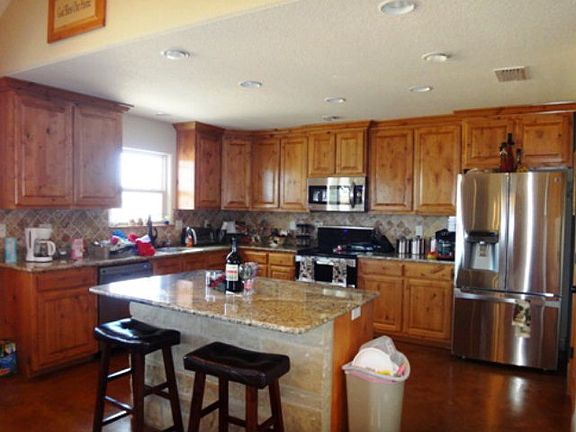 This Ranch Style Home with 3 bedrooms, 2.5 bath home rests on 5 acres just outside the city limits of Uvalde. Large open floor plan, large loft area that can be used as an office or entertainment area. Stained concrete floors throughout the house, master bath boasts of granite counters, double sinks, large tile shower, large master closet. Kitchen has large pantry, granite counter tops, top of the line stainless steel appliances, water softener. Electric gate, mesquite trees, great for 4-H projects or entertaining friends and family. Call Stephanie today for our exclusive showing. 830-591-6658