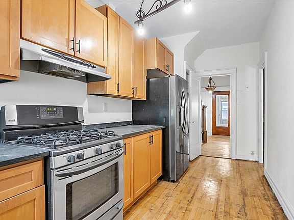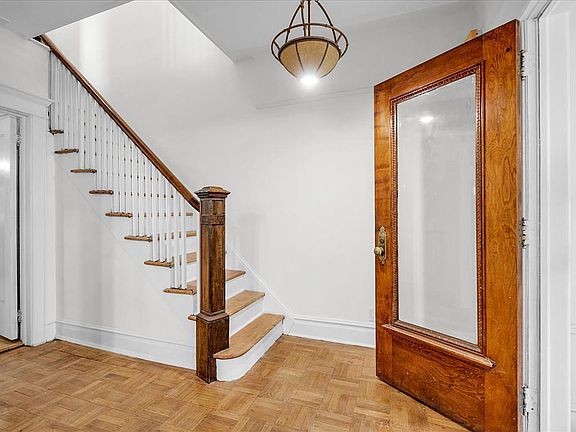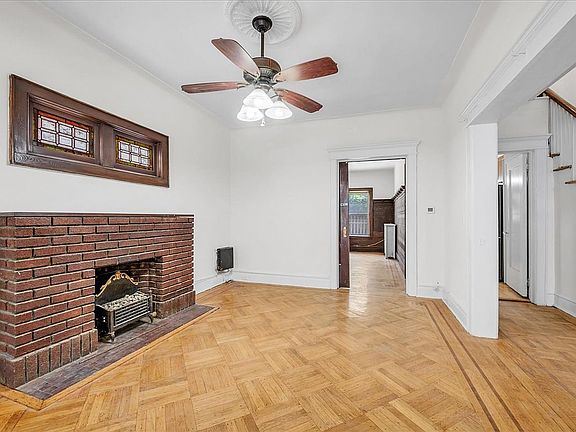 The top floor features 4 bedrooms and 1 full bathroom with windows on three sides, allowing plenty of natural sunlight. The parlor floor has beautiful original features throughout, including a fireplace, original parquet floors, pocket doors, and a wall design wrapping around the dining room.