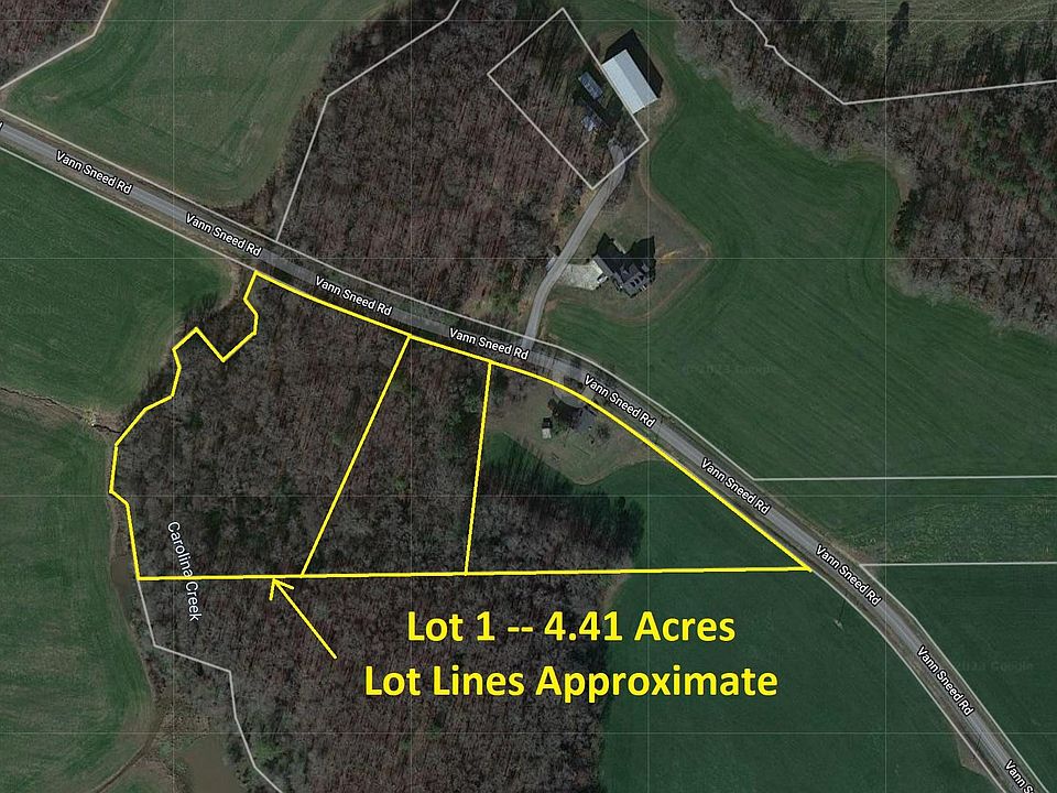 Nice wooded land in the country with a very pleasant view of surrounding properties. A running stream borders the western property line. The eastern portion of the land has the best homesite. 315' of road frontage on Vann Sneed Rd, and approximately 485' from front to back. A recent survey shows a 100 year flood line boundary running north to south ... see the plat. No septic testing has been done. Buyer will be allowed sufficient due diligence time to obtain perk test and appropriate permits. Seller intends to restrict the land to Site Built Homes Only at closing with 1200 sq ft minimum construction.