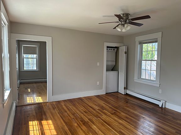 ALL UTILITIES INCLUDED. First floor entry into this townhouse style apartment with updated kitchen and bath. This is an older home with aluminum siding but the entire interior was just painted! Enjoy 5 large rooms including one bedroom on the main level and two rooms upstairs. These two rooms are connected, one is a true bedroom with the third room for office or walk thru bedroom. First floor full bathroom with large living room and nice kitchen. Stainless appliances include a side by side fridge and 5 burner gas stove. All utilities included. Parking is on street. Owner occupies basement office. Exclusive use front yard patio and garden area. Parking is on street. This home is close to Main St and not too far from Horn Pond. Tenant to pay the first month's rent, a deposit of either security or last and a full one month broker fee. Zillow applications provide easy, secure, credit application without sharing your social security number with myself or landlord. Paper applications available.