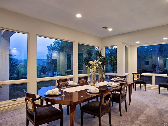 Rolling hills and distant peaks of the Cleveland National Forest set the backdrop for this ultra-private estate tucked away in guard-gated Rancho Colinas. Close to North Gate overlooking Los Ranchos Estates and situated on approximately 1.3-acres with vineyard potential, this incredible residence features contemporary architecture with highlights including a dramatic entry, oversized windows, a temperature controlled wine cellar, and sprawling views from nearly every room and various terraces. Offering multiple living spaces, 2 wet bars, an expansive deck with fireplace and built-in BBQ off the chef's kitchen, plus a resort-style yard with pool, spa, full bath, and huge grassy area, this home is an entertainer's delight. Additional features are found in the stately office with marble fireplace, wood-paneled library with French doors to peaceful patio, and an entertainment room situated on the lower level with access to the yard. Five bedrooms including the master suite with panoramic vistas, balcony, and fireplace complete this premier estate. Removed from the hustle and bustle of OC living yet encompassing all your needs, this spectacular home is not to be missed.