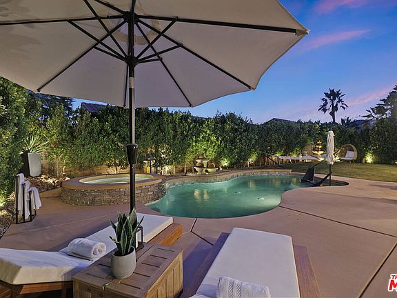 COMPLETELY REMODELED LUXURIOUS FULLY-FURNISHED PRIVATE home in the prestigious gated lake community of Santo Tomas in Rancho Mirage. MOVE-IN READY! Enjoy this spacious 3 bedroom, 3 bathroom home situated on a large corner lot that offers complete privacy. Versatile, highly desirable floorplan offers natural sun light and high ceilings throughout. Living room next to the kitchen with access to the back yard, magnificent dining room with fireplace & two sliding doors providing access to the beautiful, serene side yard with tranquil water fountain. Brand new kitchen offers quartz countertops with waterfall center island, stainless steel appliances, and walk-in pantry. Luxurious, romantic master suite offers access to the backyard, modern linear fireplace, gorgeous master bathroom with natural travertine throughout, two separate sink vanities, freestanding bathtub, separate shower, and a massive walk-in closet. Guest bedroom with access to the side yard, remodeled bathroom with travertine shower and walk-in closet with custom built-ins. Third bedroom with extremely high ceilings furnished as an executive home office, or can be furnished back to a bedroom. Over $200K spent on remodeling, interior and exterior. Beautiful SOUTH FACING backyard with lush landscaping, detailed landscape lighting, and high-end landscape speakers throughout the property. Entire perimeter of the property offers tall ficus tree hedges that provide absolute privacy. Enjoy outdoor dining and entertaining with a new custom-built outdoor kitchen with grill and sink, two fire pit seating areas, and a relaxing hammock. Enjoy the exclusive social and sports membership to Mission Hills Country Club. Complimentary unlimited pool, tennis, fitness center, croquet, pickleball, and access to the restaurants and bar.
