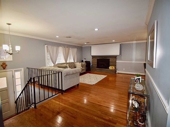 Beautifully updated oversized raised ranch on large corner lot. This home has gleaming hardwood floors throughout, an updated kitchen with granite counter tops, Thomasville cabinets, and stainless steel appliances including double ovens. The living room is nicely sized and has bay windows overlooking the front yard, wood burning stove, crown molding, and recess lighting. The dining room is tastefully charming with beautiful chair rail molding around the room. The French doors lead out to the enclosed porch which can be used as an office. The master bedroom features his and her closets and has a private full bathroom. The lower level is a large finished family room with a fireplace and another full bath. The double glass doors lead out to the patio and large fenced in backyard.