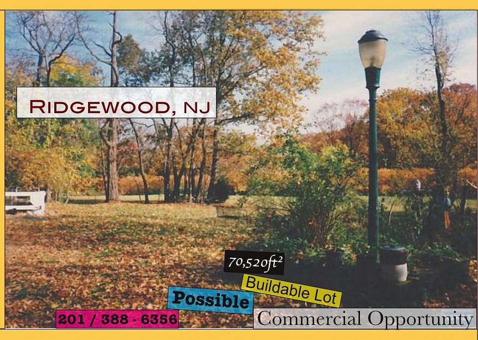 argest lot Available - Village of Ridgewood NJ ---Call 201-386-8000County Road 659 is a busy road dividing Ridgewood and Wyckoff with easy access to Route 208 and close proximity to the Midland Park Shopping Center (recently sold). Ridgewood is a full service community with a renowned education system and hospital. The majority of the road is B2 and R2. However, the adjacent municipalities have approved others as well. B1, B2 zones this size in Bergen County are selling for $3.2 - 3.5M. There is a flag lot in the rear whereby you have no visibility from the road. A Freight only (no passenger) rail line is in the rear that operates 2-3 times a week for about 30-60 seconds each. (70,520 SF) (107.5' Road Frontage) Taxes of $10,700 Call 201-388-6356Ridgewood Zoning Codes:Chapter 190: LAND USE AND DEVELOPMENTArticle X: Zoning http://ecode360.com/6692452