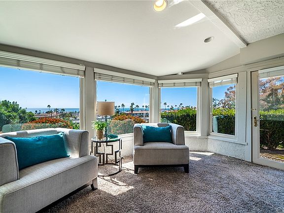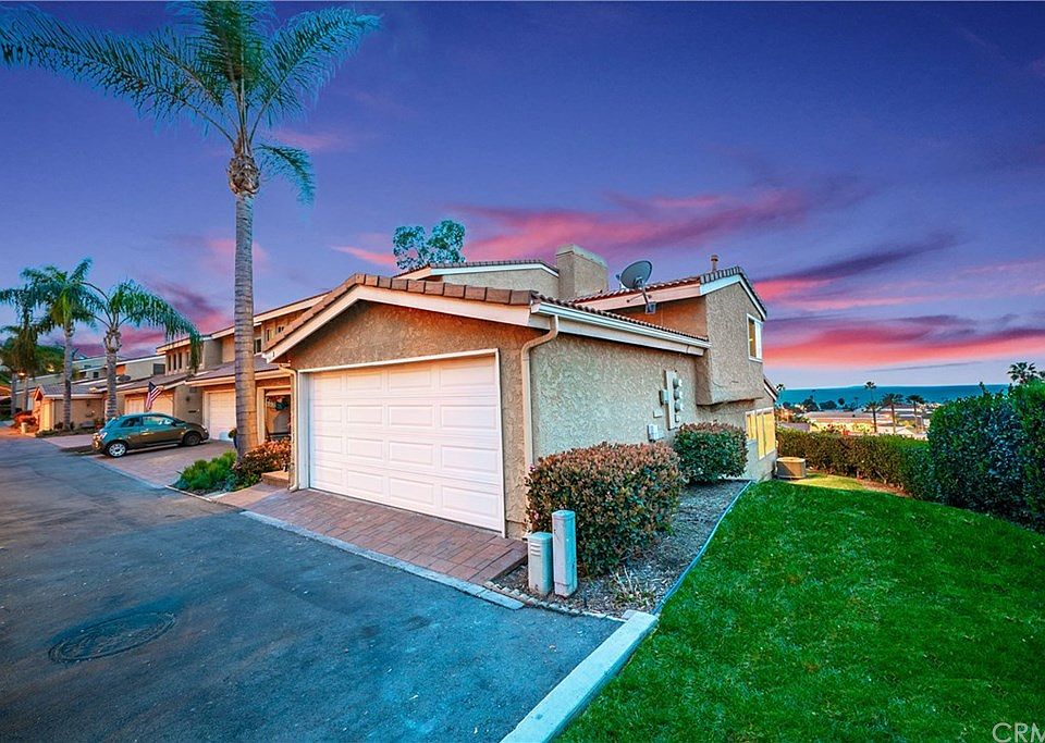 Major price reduction for quick sale! FHA and VA approved! Views galore! Proudly introducing this move-in ready 2 bedroom, 3 bathroom end unit townhome with 180-degree ocean & city light views! Perched perfectly atop a hill in the community of Seaview Townhomes, this fabulous townhome features hardwood flooring, dual pane windows, indoor laundry, fresh paint & carpet, cozy fireplaces in the living room & master bedroom, a remodeled kitchen & bathrooms, dual master suites, recessed lighting, crown moulding, bonus room off the living room, an attached two car garage & so much more! Enjoy a picture perfect 4th of July celebration, with views of every firework show from San Clemente to Laguna Beach. Rest & rejuvenate at the private association pool, spa, & tennis courts. Conveniently located within walking distance to downtown shopping & restaurants on Avenida Del Mar, this fantastic community has everything you need.