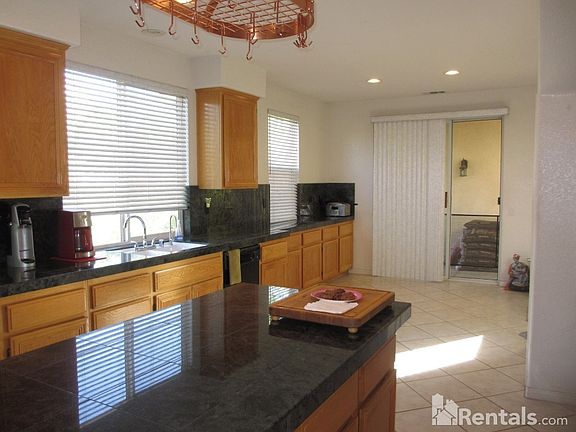 Tuscany Hills 5 Bedroom with nearly 3000 sq ft. Open floor plan with spacious formal living / dining area next to family room with fireplace and ceiling fan. Kitchen with double ovens, large center island and an abundance of cabinets. Includes refrigerator. Downstairs bedroom and bathroom. Upstairs all 4 bedrooms have walk-in closets, and one with private balcony. Master bath features his & her sinks, large soaking tub and separate shower. Large corner lot, backyard with fruit trees. 3 Car Garage. Community Pool and Clubhouse with tennis and basketball courts. Close to freeway and shopping.