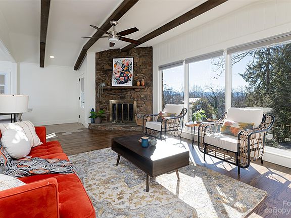 Perched right off downtown in the Albemarle Neighborhood is this completely remodeled 1960’s mid-century modern. Resting on .25 acres, this partial stone ranch offers 3 bedrooms plus an additional flex room that can act as a 4th bedroom, 3 full bathrooms, an open concept kitchen/dining/living room, and an additional family room in the lower level with a wet bar. Enjoy gorgeous mountain and city views framed by a wall of windows while cozying by a fire next to your wood burning fireplace. An expanded primary suite on the main level features a large bathroom and walk-in closet. The lower level is perfect for guests or family fun with an additional family room with wet bar, full bathroom, 1 bedroom, flex room and laundry. The walkout basement has it’s own entrance which could make for a nice income producing HomeStay(buyers agent to verify). Tucked away but close to everything Asheville has to offer, walking distance to restaurants and amenities on Charlottle Street & Downtown Asheville.