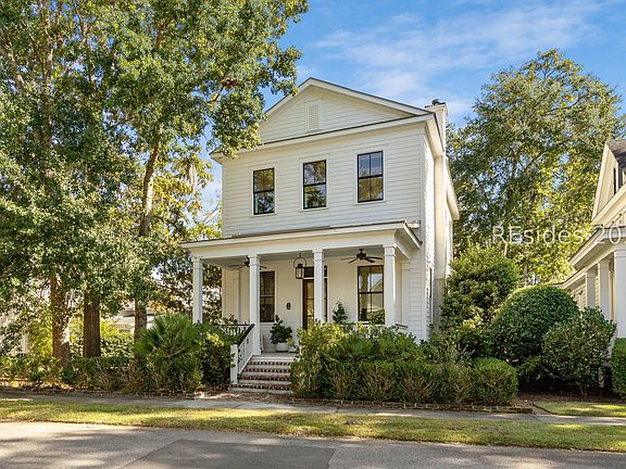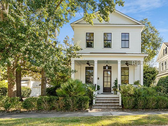 A home that looks and feels straight out of Southern Living Magazine - 1 W Bluff is effortlessly elegant & beautifully curated at every turn. Tucked along one of Habersham's most picturesque & highly desired areas, this beautifully crafted Front Light Build blends timeless Lowcountry charm with thoughtful modern design. Slow down & enjoy the breezes off the Broad River from your front porch, with the aesthetic & functional upgrade of built-to-last brick steps. Throughout the home, upgraded trim work & tall ceilings make every room feel expansive & refined. The main level boasts soaring 12-foot ceilings, gorgeous diagonal wood floor made from Shaw Natchez Hickory in a parchment tone, & an expansive open floor plan. Large windows offer plenty of Natural Light. Custom tongue-and-groove details, & Grass Cloth Wallpaper in the powder room add layers of Texture & Sophistication. Upstairs you'll find 10-foot ceilings, maintaining that open, airy feel throughout the home. The Spacious Kitchen is a Showpiece, anchored by Honed & Polished Granite Counters, Antique Italian Lighting, & a generous pantry. A built-in office nook or flexible workspace & Extra Storage Closet are both off Kitchen. Out back, a private screened porch opens to the fenced courtyard, perfect for quiet mornings or entertaining under the Lowcountry sky. There's no lawn to mow here, minimal-maintenance outdoor areas give you more time to enjoy your free time. Detached 1-Car Garage & 1-Carport. A Major Bonus is the Finished Shed with insulation, wood-paneled walls, & HVAC - Versatile Options for a studio, office, or creative retreat. (Shed not included in overall SqFt count). This home is not only stylish & functional, it's also efficient, featuring a Rinnai tankless water heater & HVAC system divided into 2 zones, controlled with a smart thermostat. Metal Roof is a longer lasting roof type in this climate. Dishwasher, Refrigerator, & HVAC Compressor have all been updated since build. Upstairs, the serene primary suite offers a walk-in closet with the laundry room close by. Two additional bedrooms & a 2nd full Bathroom are also upstairs. A large, spray-foamed attic provides plenty of temperature-controlled storage. Crawl Space is also spray foamed. Low maintenance, beautifully built, and rich with Southern character, this Habersham home captures the best of Beaufort living. Habersham is an Award-Winning Coastal Living & Southern Living Community with Luxury Amenities for an Affordable HOA.
