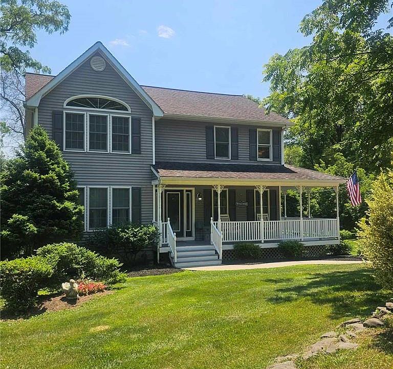 Discover this charming colonial situated on a tranquil & private road with 1 acre of well-manicured lawn adorned with perennials & a partially fenced yard overlooking a vast pond, ideal for boating, fishing or serene relaxation. A spacious front porch welcomes you into the center hall colonial, bathed in natural light, featuring modern flooring & an excellent layout. The main level hosts 2 living areas, a generous eat-in kitchen with waterfront views & a deck accessible via sliding doors. A full bathroom & laundry/mudroom round out the 1st floor. Upstairs you'll find sizable bedrooms, each with walk-in closets, a large hallway bathroom & an expansive primary bedroom with a nook waiting to be turned into an ensuite bathroom, with plumbing already installed. The basement offers a sliding glass door leading to the backyard, ample utility & storage space, plus two additional areas awaiting your personal touch, potentially adding an extra 1000 square feet of living space. Make it yours! Additional Information: Amenities:Storage,HeatingFuel:Oil Above Ground,