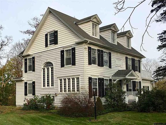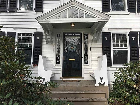 Magnificent details abound in this 1915 Colonial by Walter Van Guysling, one of 9 homes built in Colonial Court Estates with Van Guysling's whimsical architectural statement: a unique shape in all of the shutters, in this home a heart. Stunning wood work throughout: exposed beams in family room, original plate shelves line the dining room walls, impressive open staircase to 2nd floor bedrooms, HW flooring. Private, landscaped yard surrounds this home along with a bubbling brook and hand stacked stone wall.