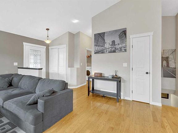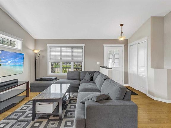 If you're looking for a well-kept home — this immaculate, fully finished bungalow is it! Offering 5 bedrooms in total, there’s plenty of room for the whole family with 3 bedrooms on the main floor. The open concept design features a spacious living room with hardwood flooring, a cozy 3-sided gas fireplace and vaulted ceilings that carry into the kitchen and dining area. The kitchen is complete with stainless steel appliances (including a brand new dishwasher), pantry, and garden door access to the back deck and yard. The beautifully landscaped yard showcases two cherry trees, two plum trees, and two apple trees, along with several garden beds, a shed, and a fire pit area. The main floor also includes laundry off the garage entrance with a brand new washer, a 4pc bathroom, and a primary bedroom with a large jetted soaker tub and separate shower. Downstairs, the fully finished basement offers a pool table area, spacious family room, two more bedrooms, another full bathroom, and plenty of storage under the stairs. Additional highlights include front and back irrigation, a Nest thermostat, attached garage with electric heater, low-maintenance rubber mulch in the front garden beds, new hot water tank (2023), and a rough-in for in-floor heating in the basement