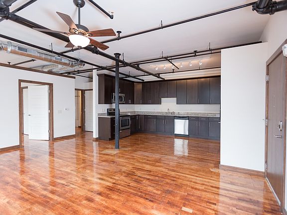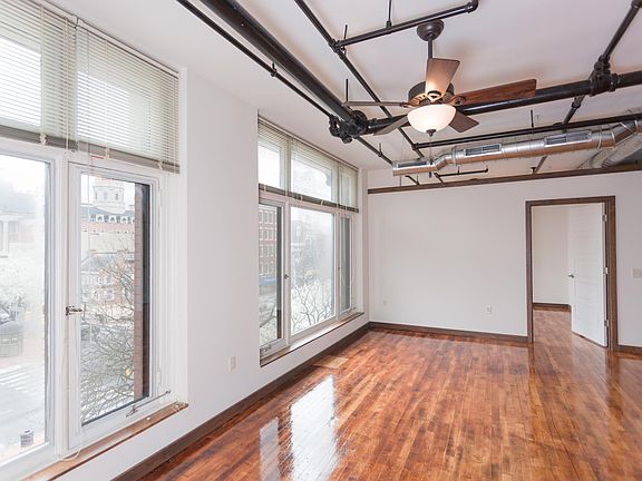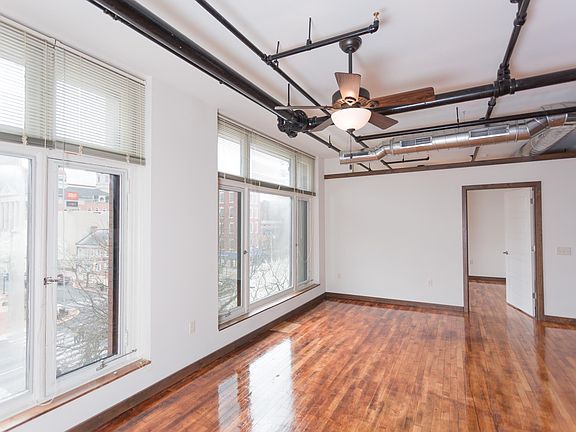 Spacious, modern, loft conversion in popular downtown development. High ceilings, vintage hardwood floors, large windows. Open plan living, dining, kitchen area. Quality kitchen has new stainless steel appliances and granite counter tops. Washer/Dryer in unit. Storage unit included. Tenants have access to a private rooftop deck and gym. Secure building in the heart of downtown. Landlord pays water, sewer, trash - tenant pays electric and cable