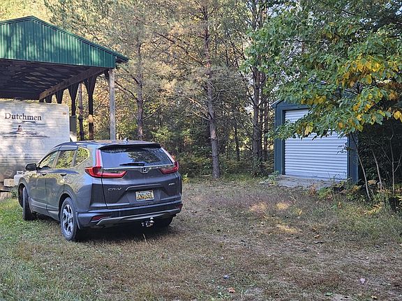 An existing outbuilding pavilion remains on the property, providing immediate utility for gatherings or storage. Please note: the land has not been perk tested, and utilities (electric and gas) are not currently available, giving you the chance to design your setup from the ground up.