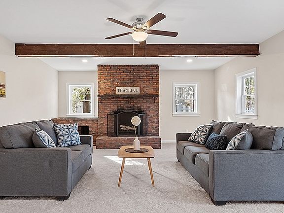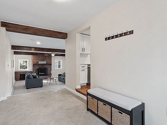 Charming renovated oversize Cape on one of Wakefield's most sought after stone wall lined private lanes. Open concept floor plan renovated top to bottom, updated while maintaining original character. Gorgeous new classic white kitchen with granite counters, SS appliances and peninsula seating open to dining room. Sunny living room with HW floors, crown molding & fireplace. Bonus 25' great room with beamed vaulted ceiling, fireplace and french doors to large deck. 1st floor private master suite with new serene master bath, custom tiled shower, double vanity, quartz countertops & double closets. 1st floor 1/2 bath with laundry. 2nd floor features 2 front to back bedrooms, walk in cedar closet and full bath with custom tiled tub surround. 1 car attached garage with workshop/storage. Entry mudroom. New siding, roof, tilt in thermopane windows, doors & water htr. Extra unfin space in basement. Corner lot, minutes to Lake Quannapowitt. No OH, private showings only. Offers due 3/18 3pm
