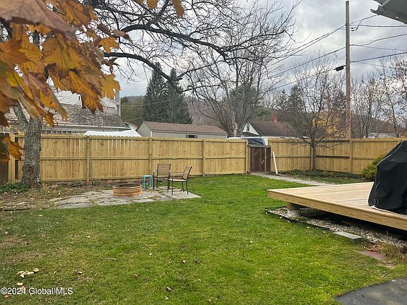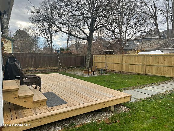 This 3 bedroom, 1 1/2 bath home is a beauty. Newly refinished wood floor in the living room, foyer, 1/2 bath and open stairway. Spacious mud room, back entrance with plenty of room for shoes, coats etc., Updated, applianced kitchen with plenty of storage. Island doesn't stay, which gives room for another island or table. Living Room is large and has space on one end for dining area, if desired. Beautiful open stairway leading up to the 3 bedrooms, spacious center hall and full bath with laundry area. Outside there is a back deck and a fenced and landscaped back and side yard. Parking area, outside fenced area. Double pane windows with the exception of 2.