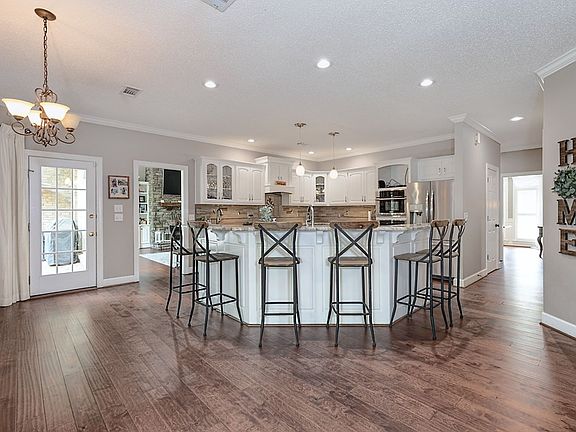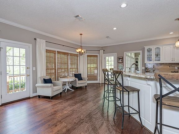 Stunning 4-bedroom, 3.5-bath home in the desirable Coca Lake subdivision. The great room boasts soaring ceilings, a striking stone fireplace, and double arched windows that flood the space with natural light while offering beautiful views of the expansive deck and fully fenced backyard. The kitchen is a chef's dream, featuring stainless steel appliances, a 5-burner gas cooktop, custom cabinetry, exquisite granite countertops, a double sink plus a separate handwashing sink, a breakfast bar that comfortably seats six, and a cozy breakfast sitting area with an adjoining keeping room. For elegant entertaining, the formal dining room features floor-to-ceiling windows, a beautiful chandelier, and chair railing. A convenient half bath is also located on the main level for guests. The spacious main-level master suite includes an en-suite bath with separate his-and-hers walk-in closets, dual vanities, a soaking tub, and a separate shower. Additionally, a dedicated office/library provides the perfect space for working from home or homeschooling. Upstairs, you'll find three generously sized bedrooms with spacious closets, a Jack-and-Jill bath with double vanities, a separate hall bath, and a bonus room with a skylight—ideal for hobbies, a home gym, or a playroom. Situated on 1.5 acres, the property boasts a fully fenced backyard, two large connected decks, and a covered picnic area. The beautifully landscaped yard is equipped with an in-ground sprinkler system, and the home includes a side-entry double garage for added convenience.
