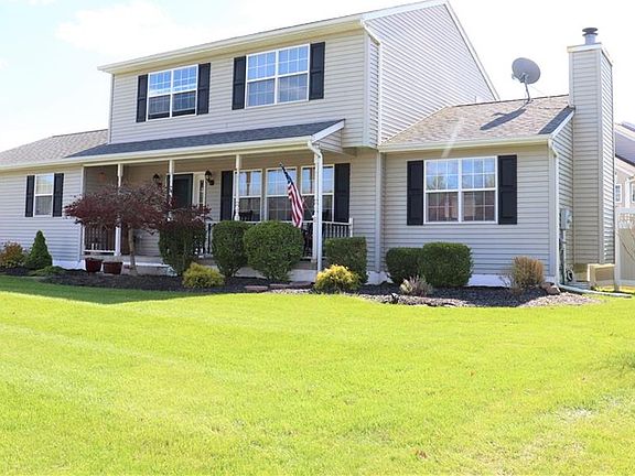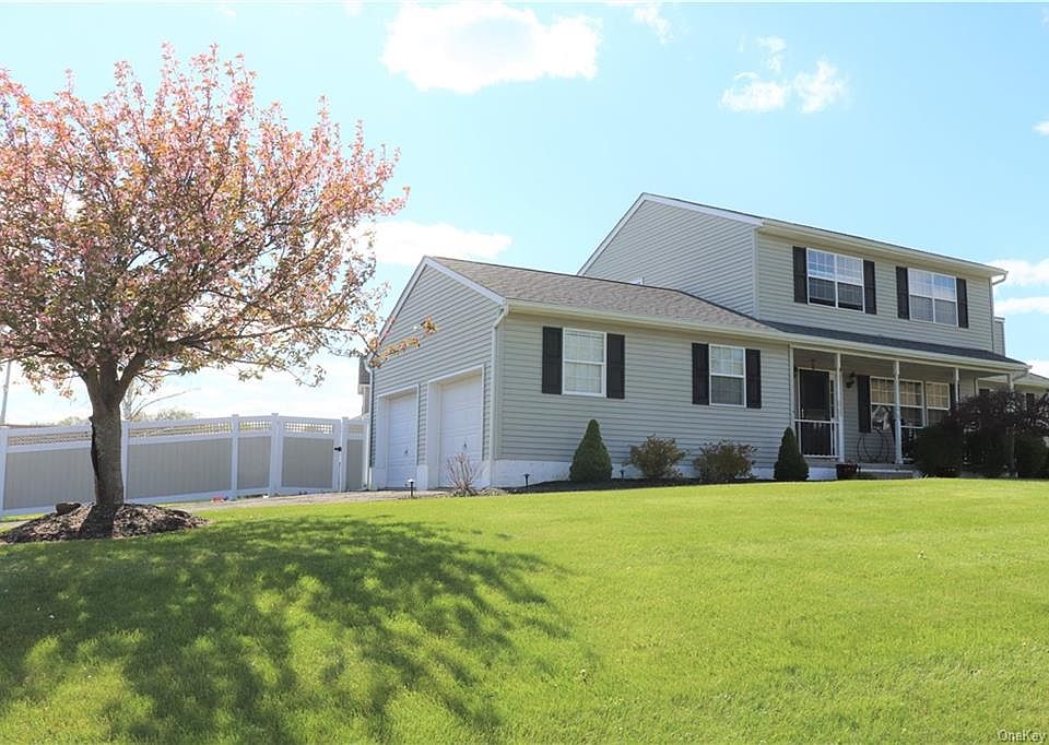 Welcome home to this lovely Colonial w/a rocking chair front porch set on a corner lot. This home features a beautiful kitchen w/granite counters, SS appliances and bar seating overlooking the living room w/vaulted ceilings, recessed lighting and wood FP. Sliders off the kitchen w/built in blinds opening to a large Trex deck (2016) w/electrical awning and a 6 ft vinyl fenced in yard w/an AG pool and shed. Large dining room w/chair rail, HW flooring and crown molding and an updated half bath complete the main level. The upstairs has two nice size bedrooms w/carpet, full bath w/tile shower/tub and a master bedroom w/dual closets and a master bath w/dual sinks and tile shower/tub. The lower level is finished and included in the square footage w/a pellet stove on its own thermostat, a laundry room and a nice size family room for entertaining with recessed lighting. Water softener owned (2015). Hot water electric heater (2013). Roof (2010). Two car garage. Washingtonville School District.