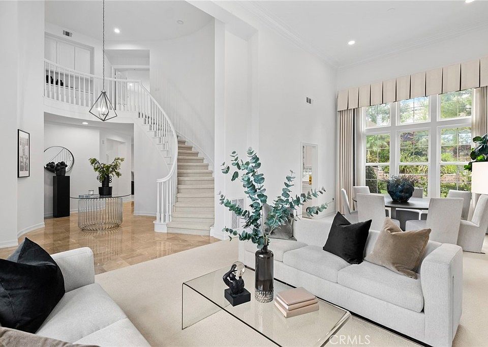 Situated on a rare premium corner-lot that spans over 17,400~ sqft,1 Waterford offers unparalleled privacy and boasts a trophy lot location. Championed on one of the largest lots in the gated community of The Pointe, this very unique corner parcel offers a cul-de-sac location and estate-like frontage, a private oversized backyard offering endless opportunities, and living spaces that are highlighted by an abundance of natural light. Upon entering the residence, guests will be greeted with soaring double vaulted ceilings in the foyer and formal spaces as well as a sweeping staircase. This 4 bed + 3 bath dream home offers nearly 2,700 sqft of recently refreshed living space, characterized by an open floor-plan, high-ceilings, grand foyer, new light fixtures, and on-trend colors throughout. The first of 4 bedroom suites is located on the first level along with the laundry room and direct access to the oversized 3 car garage. The upstairs level features three spacious bedrooms including the tastefully appointed primary suite with an oversized en suite bathroom and walk in closet. Completing the home is immediate proximity to world class shopping, dining, award winning schools, resort style beaches, and a Pelican Hill resort just down the road.