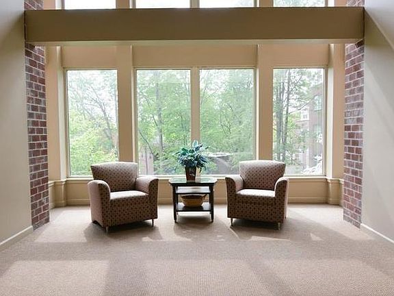 Luxury living One Bedroom One and a half baths Heat Included in rental price available September No Pets...sorry Overlooking babbling Brook Balcony for summer New Kitchen. granite counters...............One months fee to tenant Marble floors Storage available One covered parking spot in garage Fitness Room...................please text or call